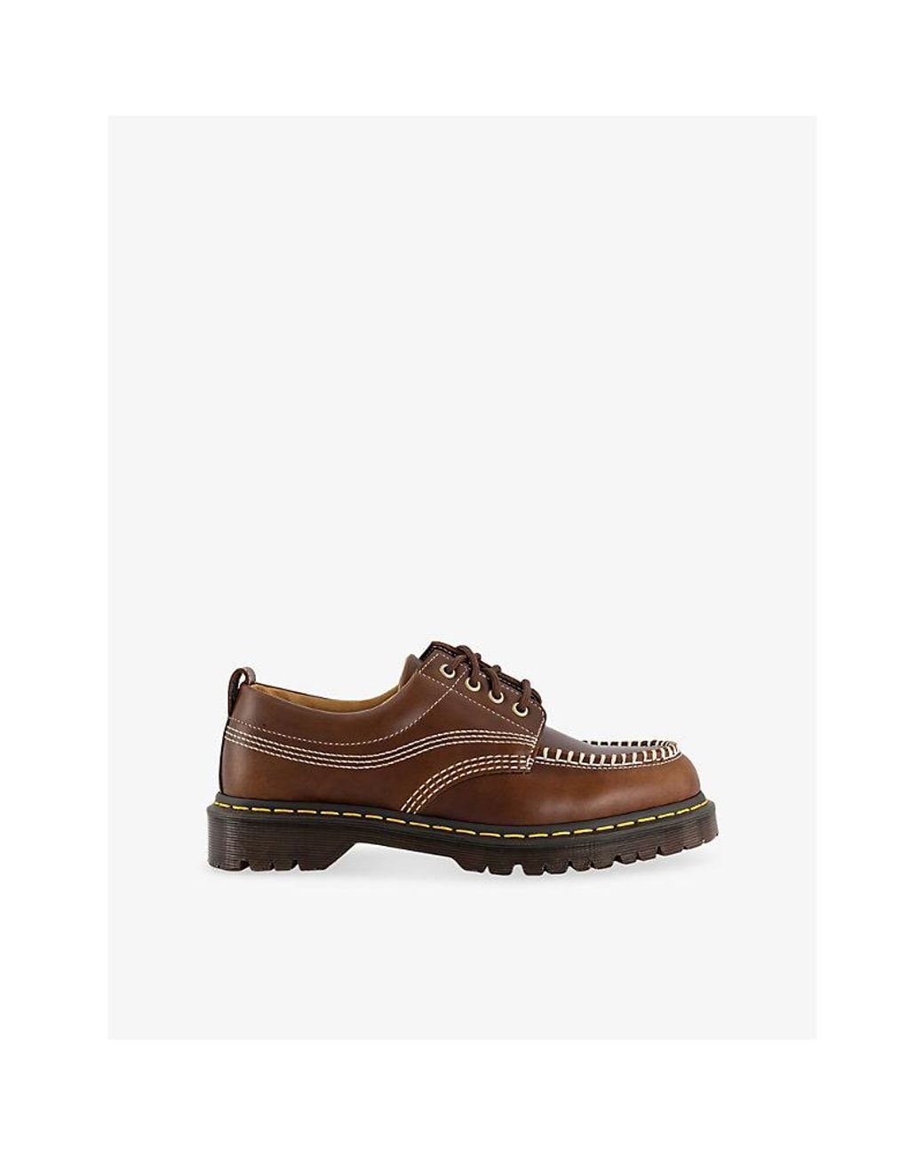 Dr. Martens leather shoes100% leatherLace-up fasteningRound toe, heel tab, contrast stitching, chunky soleSpecialist leather cleanUpper: 100% leatherLining: 60% leather, 40% syntheticSole: 100% rubber Colour: brown