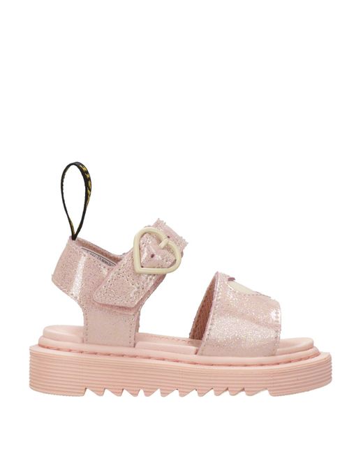 - Leather - Glitter finish - Open toe - Fixed band at front - Heart inlaid on the upper - Ankle strap with adjustable heart buckle on front - Fabric pull tab at the back - Iconic yellow stitching - Grooved motif at the bottom - Lightweight EVA sole - Platform height 2cm Colour: pink