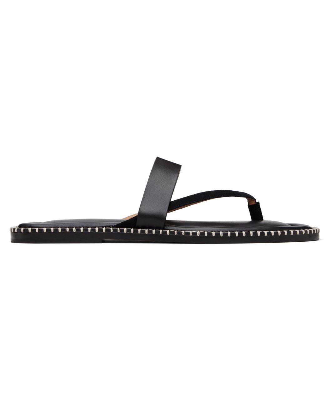 Buffed calfskin sandals. · Open toe · Thong-style and fixed straps at vamp · Logo stamp at padded footbed · Blanket stitching in white at welt · Nubuck sole with rubber injection Supplier color: Black Colour: black