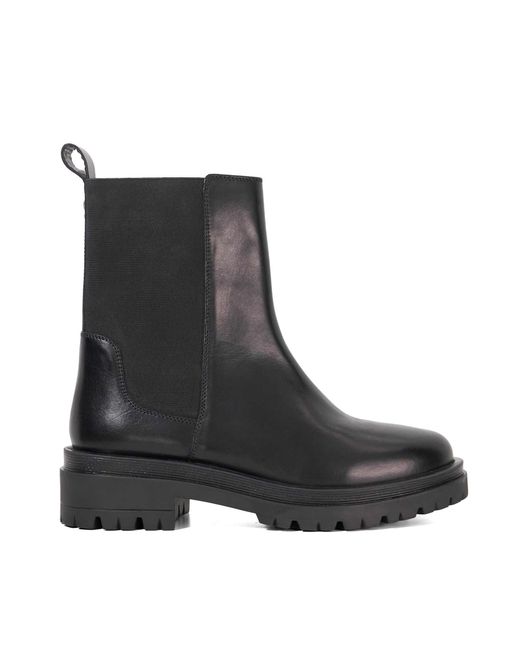 Dune London's Women's Chelsea Boots deliver lasting appeal with contemporary edge. Made with sleek lines and elastic side panels, they offer a style that transitions easily from day to evening wear. Product Highlights: * Classic pull-on design with elastic gussets * Sculpted shape for feminine profile * Durable sole with subtle heel height Colour: black