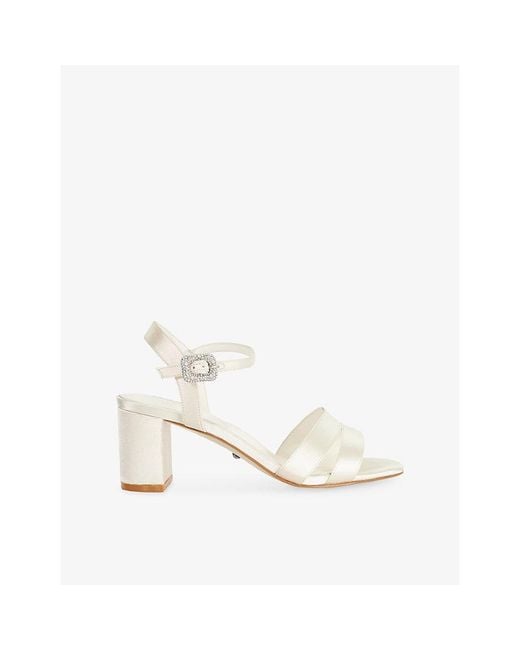 Dune satin sandals100% satinAdjustable buckle fasteningSquare open toe, block heel, embellished hardwareHeel height 45mm / 1.75inWipe cleanUpper: 100% syntheticLining: 100% syntheticSole: 100% resin Colour: white