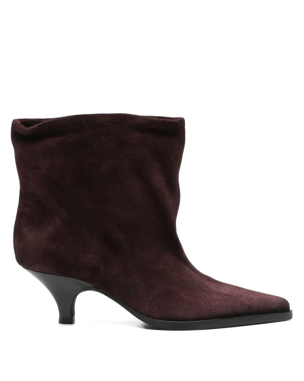 Burgundy suede upper pointed toe pull-on style Size: 36. Gender: Female. Material:Calf Leather/Calf Suede/Rubber/Calf Leather. Colour: brown