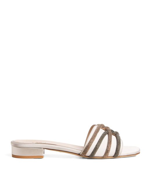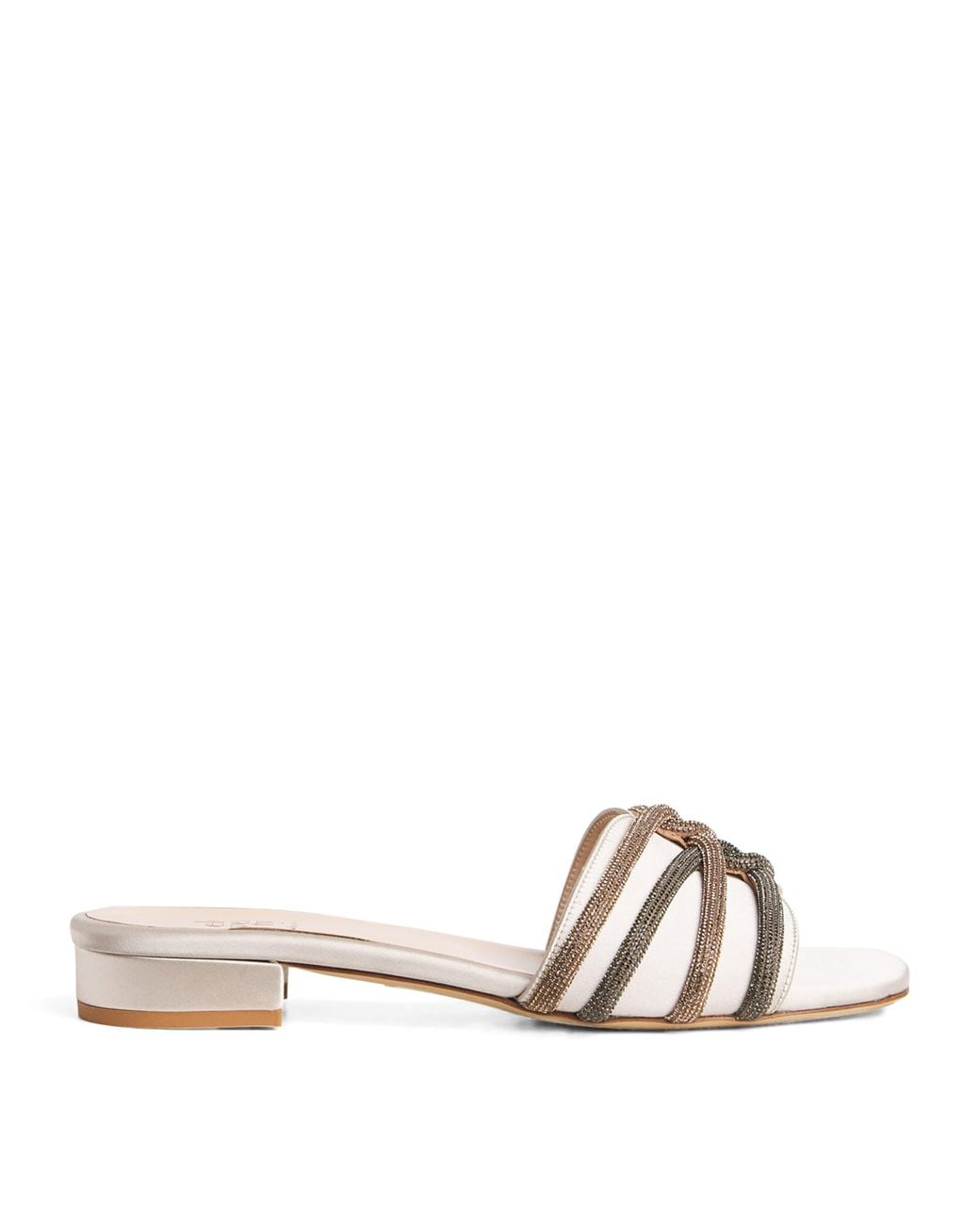 With each of its pieces made in Italy, Eleventy is no stranger to elegant design. Reminiscent of a slipper silhouette, these mules are crafted with a satin upper embellished with rhinestone criss-cross straps, lending a dazzling shine with every step taken. Colour: natural