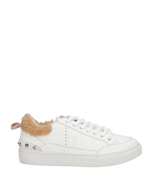EMANUÉLLE VEE. low-top trainers, leather, plain colour with appliqués, studs, plush fabric trims, fabric inner, lace-up, round toe, rubber cleated sole, contains non-textile parts of animal origin. Leather. Colour: white