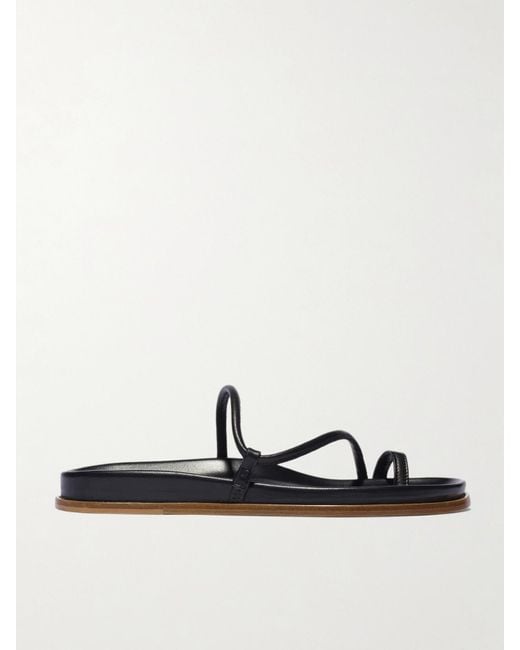 Emme Parsons' 'Bari' sandals are modelled after the brand's best-selling 'Susan' style. Handcrafted by Italian artisans, this leather pair has a comfortable, sunken footbed and slim, winding straps. The understated silhouette makes them easy to wear with just about anything. Colour: black