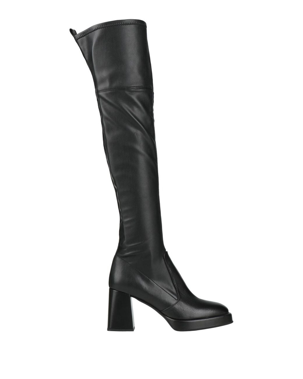 EVALUNA. over-the-knee boots, leather, synthetic material, plain colour, no appliqués, square toe, block heel, leather lining, rubber sole, contains non-textile parts of animal origin. Leather, Synthetic material.