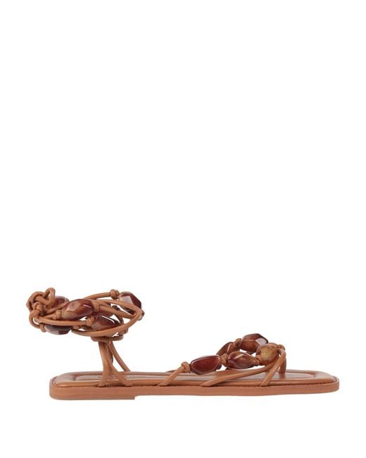 FARM RIO. sandals, synthetic material, plain colour with appliqués, embellished, fully lined, ties at ankle, square toe, flat, leather sole, contains non-textile parts of animal origin. Synthetisches Material. Colour: brown