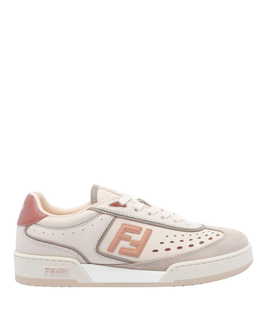 Match Woman's Sneakers By Fendi. Featuring: Leather Upper Round Toe Lace-up Fastening Logo Label At Tongue Perforated Details Ff Patch At Sides Contrasting Heel Counter Padded Low-cut Collar Rubber Sole With Fendi Lettering On The SideComposition: 100% calf leather Sole, 100% rubber