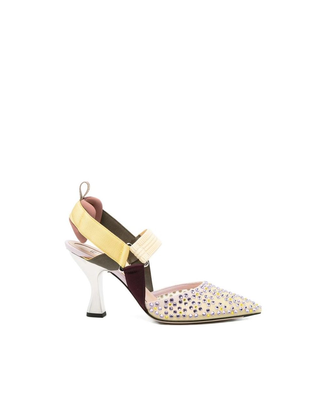 Light yellow/multicolour appliqué detail strap detail pointed toe open heel slingback strap This piece comes complete with a protective dust bag.
