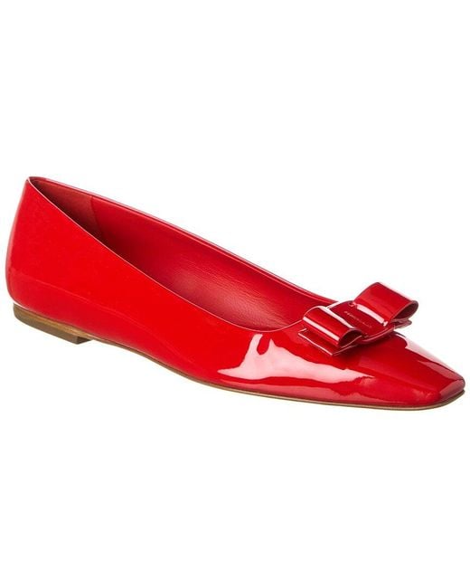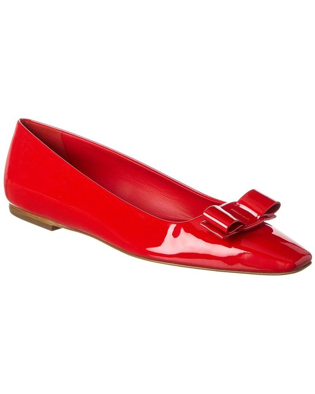 About the brand: The Gancini, The Vara, and all the icons in-between. Please note: B indicates narrow sizing; C indicates standard sizing; D indicates wide sizing; M indicates medium sizing. Made in Italy Anz 1 Patent Flat in red patent leather and tonal hardware with patent Vara bow accent Lightly padded leather insole Smooth leather sole Our products are 100% genuine. In some cases we purchase merchandise from trusted independent suppliers and not directly from the brand owner. In all cases we stand by the authenticity of every product sold on our site. Colour: red