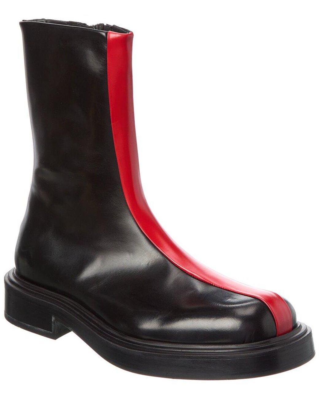 About the brand: The Gancini, The Vara, and all the icons in-between. Please note: Size selections are UK. For US conversions, please reference size chart. Please note: D indicates narrow sizing; EE indicates standard sizing; EEE indicates wide sizing; M indicates medium sizing. Made in Italy Leather Boot in black and red leather and silver-tone hardware with elastic side panels Inner side zip-up closure Lightly padded leather insole Smooth man-made sole 1.5in heel 1in platform 10in shaft 12in boot circumference Please note: All measurements are approximate and were taken from a size 9; slight variations may occur. Our products are 100% genuine. In some cases we purchase merchandise from trusted independent suppliers and not directly from the brand owner. In all cases we stand by the authenticity of every product sold on our site. Colour: black