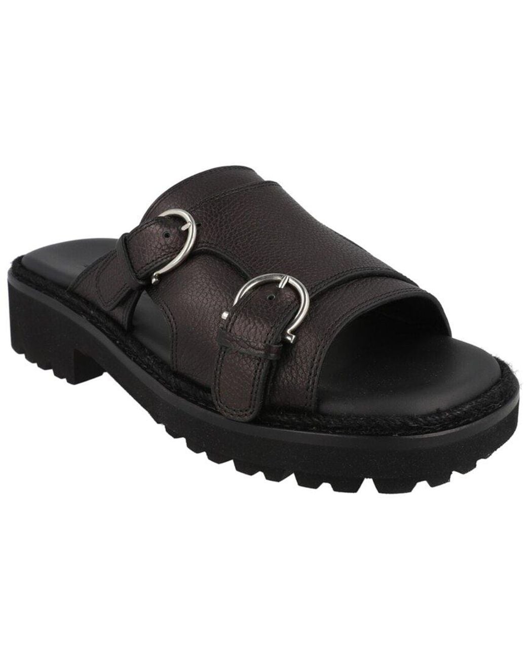 Leather Sandal in black upper: 100% calfskin leather and silver-tone hardware Rubber sole with traction 1in platform Our products are 100% genuine. In some cases we purchase merchandise from trusted independent suppliers and not directly from the brand owner. In all cases we stand by the authenticity of every product sold on our site.