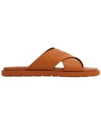Ferragamo Men's Brown Two-Strap Flat Sandals