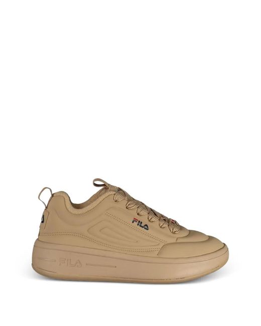 Brown logo print to the side logo patch at the tongue front lace-up fastening pull-tab at the heel round toe chunky rubber sole Size: 5.5. Gender: Female. Material:Polyurethane/Fabric/Rubber. Colour: natural