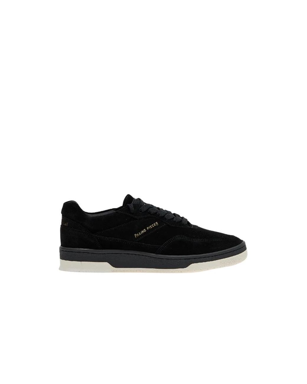 Classic black trainers for men from the brand Filling Pieces. Featuring a round toe, lace-up fastening, brand logo on the side, reinforced heel, leather insole, and durable rubber outsole. Made of suede leather and rubber. Colour: black