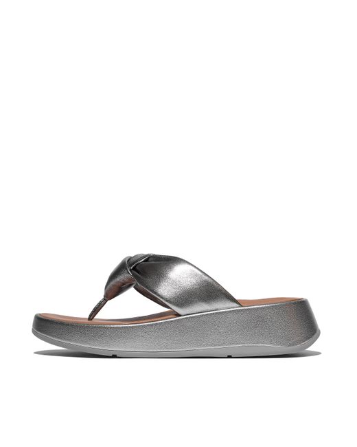 Women's Grey F-Mode Knot Soft-Leather Flatform Toe-Post Sandals, Markdown