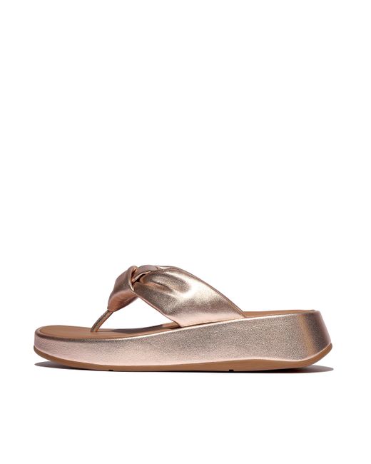 - F-Mode Knot Soft-Leather Flatform Toe-Post Sandals, Markdown