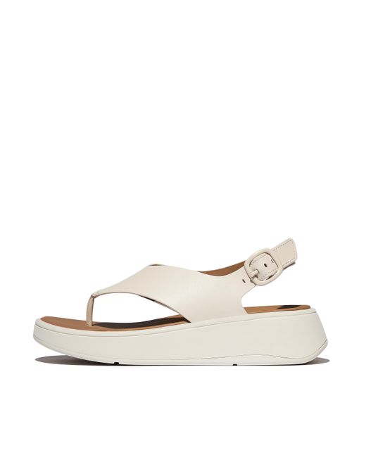 Women's White F-Mode Leather Flatform Back-Strap Toe-Post Sandals