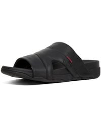 Fitflop Men's Blue Freeway Pool Slide In Leather Open Toe Sandals