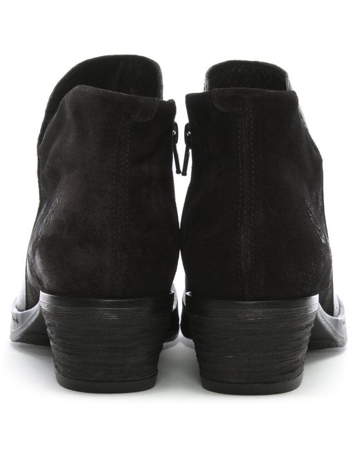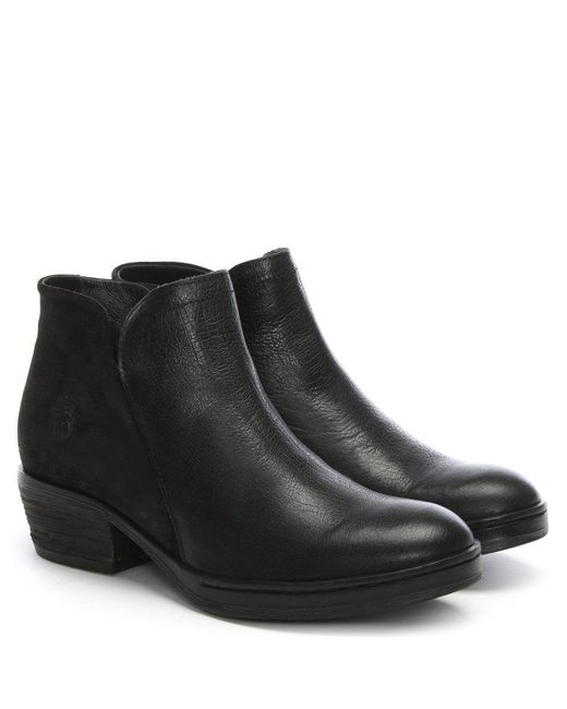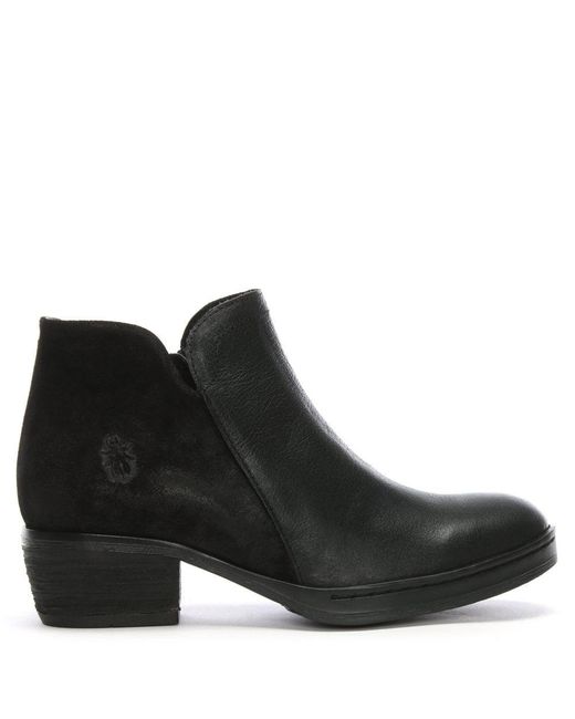The 'Cled' ankle boots are part of the new season collection from Fly London. This transitional style is crafted from both premium leather and suede with patterned leather lining and comfy rubber sole. An easy to wear slip on style featuring zip fastening to the inner leg. Classic round toe and sturdy block heel makes up the silhouette. Signature Fly London branding is seen throughout. Colour: black