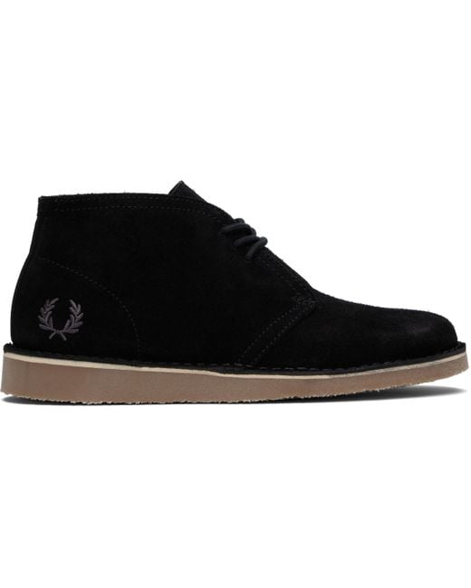 Ankle-high suede desert boots. · Lace-up closure · Logo embroidered at outer side · Topstitching at welt · Crêpe rubber sole Supplier color: Black Colour: black