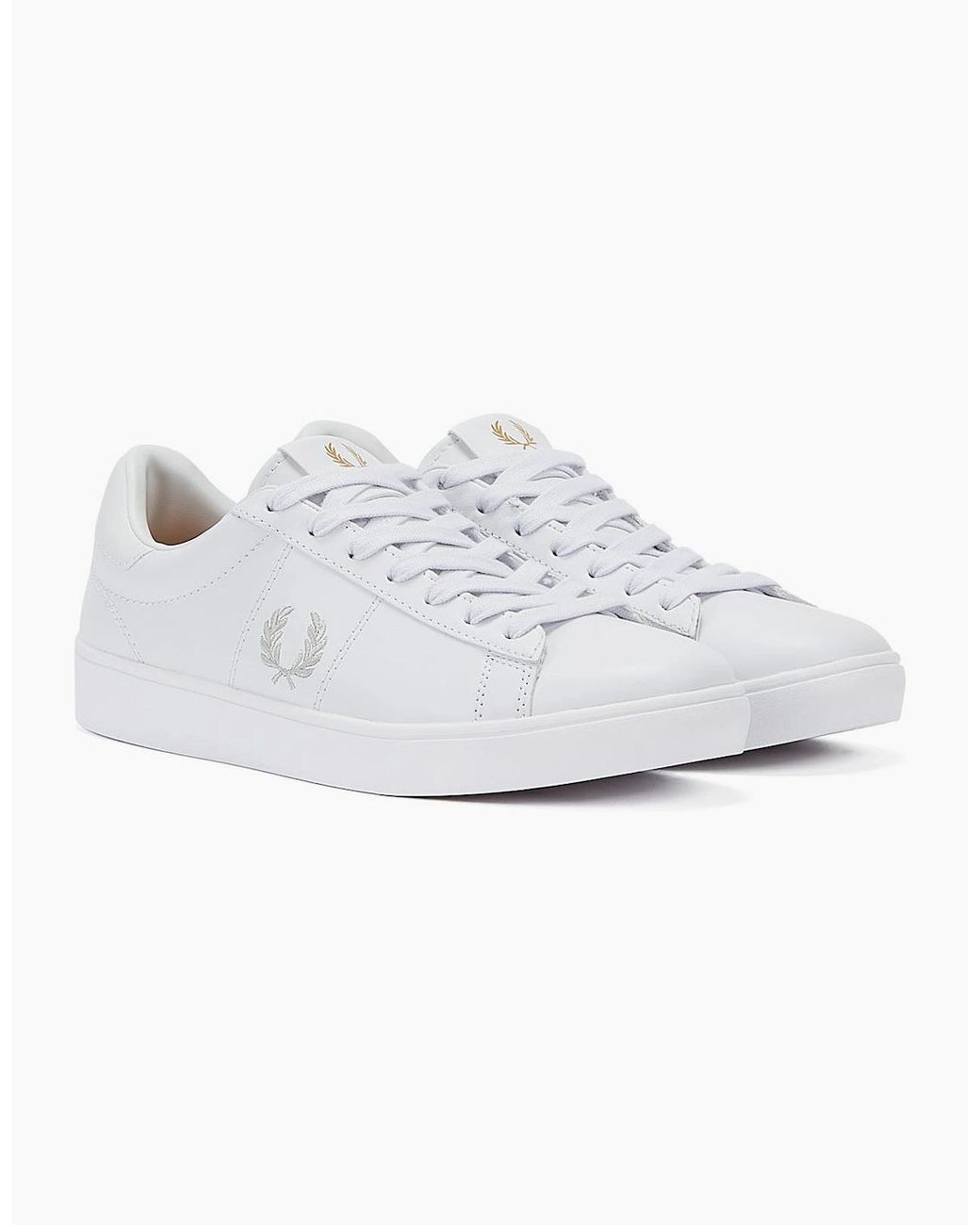 A minimalist tennis shoe silhouette offering all important ankle support and original tennis details. Tonal elements such as stitch detailing and flat laces blend with a smooth leather upper whilst a contrast tab at the heel injects some colour. Colour: white