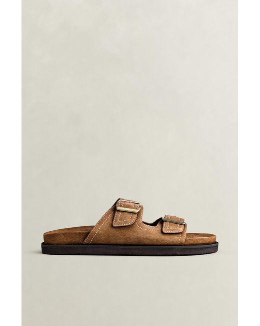 Perfect for the warmer seasons, the Fairbro sandal is a smart-casual choice for you footwear collection. Crafted with a smooth suede upper and leather insole, it features a shaped footbed for extra comfort and an EVA outsole. For a touch of branding, the sandal is detailed with a subtle Gant logo engraved on the buckle. Colour: green