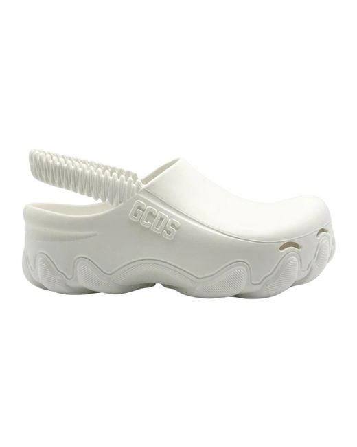 Gcds Clogs — bold, futuristic clogs designed to add an urban twist to everyday looks. They feature a sculptural, voluminous sole and a 3D Gcds logo on the side for strong visual impact. Key attributes: White | Bianco | Synthetic | Slip-on design | Practical and comfortable footbed | Clogs with rounded toe | Sculptural, moulded sole with wavy details | Voluminous, contemporaneous silhouette | 3D embossed Gcds logo on the side | Moulded, contoured upper structure | Dimensions & fit: Practical, comfortable fit | Easy slip-on wear Colour: white