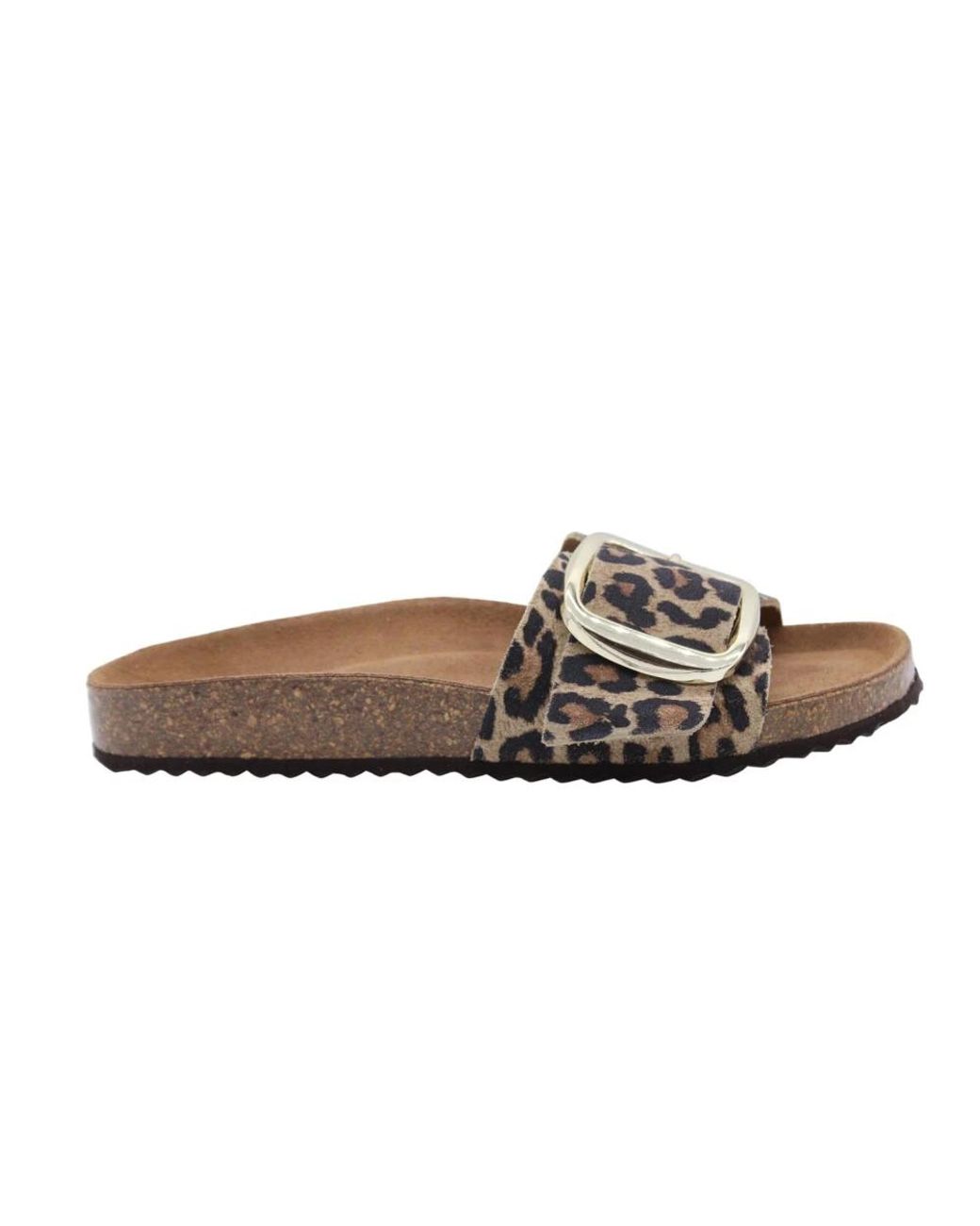 Geox Poeto Slipper is a casual slider designed for easy everyday wear, featuring a brown leopard print for a statement look. Ideal for quick outings and relaxed summer days. Key attributes: Brown | Leopard print | Slip-on | Leopard print pattern Colour: brown