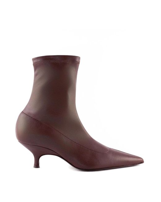 Elevate your style with these Gia Borghini Mia Synthetic Leather Stretch Bordeaux Heeled Boots. Featuring a kitten heel, pointed toe, and a comfortable 50mm heel height, these boots are perfect for the modern woman. Colour: brown