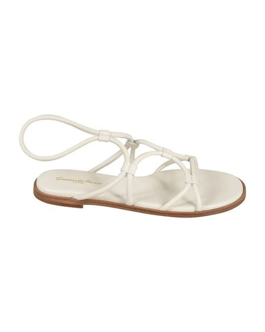Gianvito Rossi Leather Flat Sandals are minimalist, nappa-leather sandals designed for refined everyday wear. The ankle-strap silhouette offers a clean, low-profile look ideal for warm-weather styling. Key attributes: White | Nappa leather | Ankle strap | Leather sole | Flat sole | Strappy silhouette | Composition & care: Outer: Lambskin 100% | Lining: Calf leather 100% | Sole: Calf leather 100% Colour: white