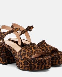 Gianvito Rossi Women's Natural Gaeta 45 Leopard-Print Velvet Sandals