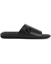 Giorgio Armani Men's Black Logo Embossed Leather Slides