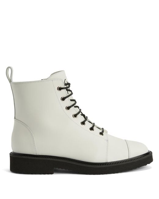 <ul><li>White leather</li><li>Silver metal accessories and silver metal internal zip</li><li>Black laces</li><li>Black sheepskin lining and black faux fur insole</li><li>Black rubber sole with logo</li><li>Made in Italy</li></ul>