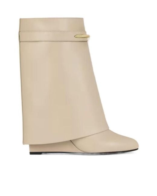 Shark Lock Leather Knee-High Biker Boot - Natural