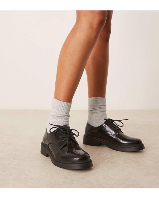 Shoes by Glamorous Wide Fit Lace-up fastening Round toe Chunky sole Low block heel Wide fit Colour: brown