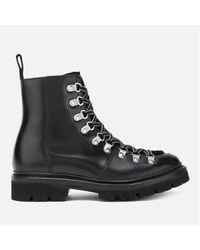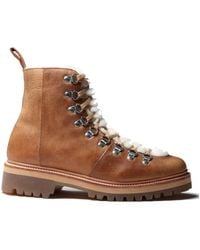 Grenson Women's Brown Nanette Shearling-lined Pebbled-leather Combat Boots