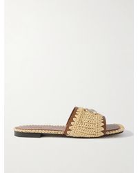 Gucci Women's Brown Double G Leather And Raffia Slides