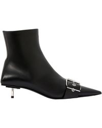 The ankle boot in shiny black leather is designed with a lug sole and elastic inserts on each side for a pull-on entry. Completed with a detachable ankle strap dotted with sparkling crystals encased within engraved trims, resembling vintage jewels. The emblematic double g finishes the front. Black leather. Detachable ankle belt with crystals and double g. 9cm heel height with 2cm platform. 14cm shaft height. Made in italy. Leather. Colour: black
