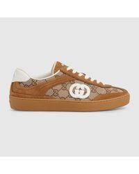 Go to GucciThis pair of shoes is crafted from supple suede, exuding a sophisticated yet modern appeal. The streamlined silhouette is elegantly enhanced by the signature Interlocking G logo, adding a refined touch to the
