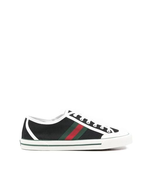 Gucci Tennis 1977 Trainer updates a vintage tennis silhouette with a black canvas upper and the house Web stripe, delivering a casual, heritage-focused trainer for everyday wear. Key attributes: Black | Canvas | Vulcanized rubber sole | Flexible construction | Lace-up fastening | Green and red Web stripe detail | Round toe | Suede-covered toe cap | Interlocking G motif on the sole | Dimensions & fit: Fits true to size. | Composition & care: Canvas | Suede | Leather | Textile lining | Rubber sole | Protect from direct light, heat and rain. If wet, dry immediately with a soft cloth. Wipe clean; do not machine wash. Colour: black