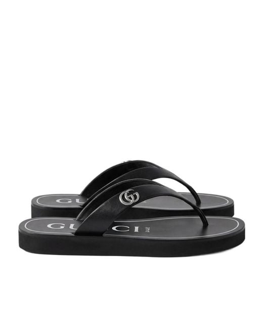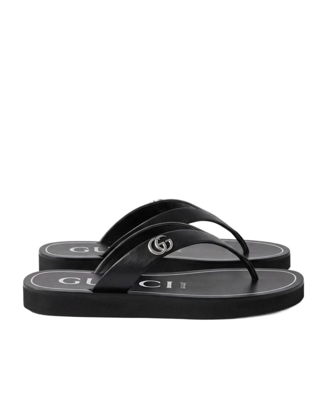 Black leather Silver-toned hardware Leather lining Double G detail Rubber sole Leather insole with Gucci logo Flat Colour: black