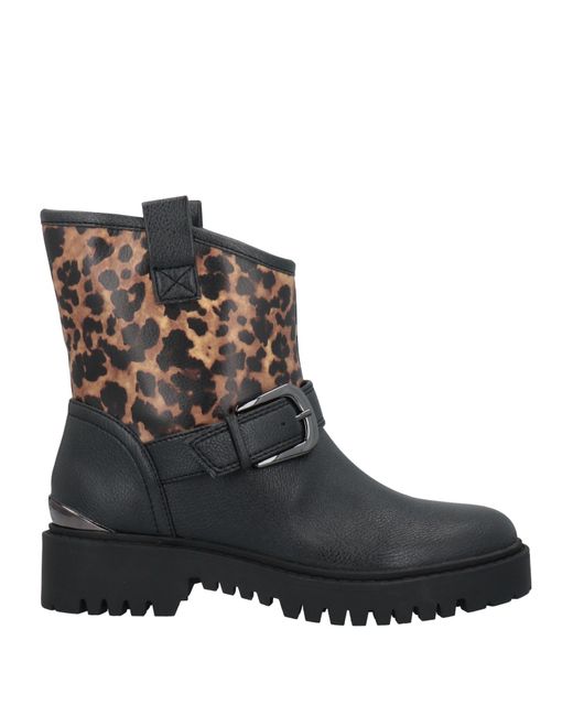 GUESS. biker ankle boots, coated fabric, leopard-print, brand logo, buckle, leather lining, round toe, square heel, rubber heel, lug sole, contains non-textile parts of animal origin. Textile fibres.