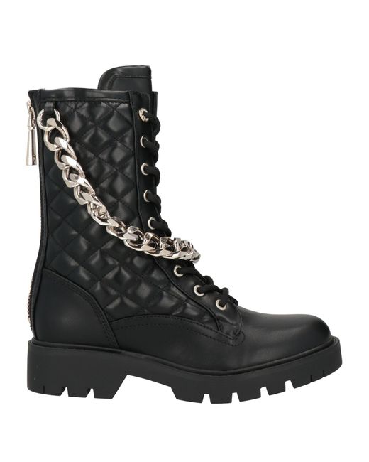 GUESS. coated fabric, quilted, metal applications, solid colour with appliqués, leather backing, zipper closure, laces, round toeline, square heel, rubber heel, lug sole, combat boots. Textile fibres.