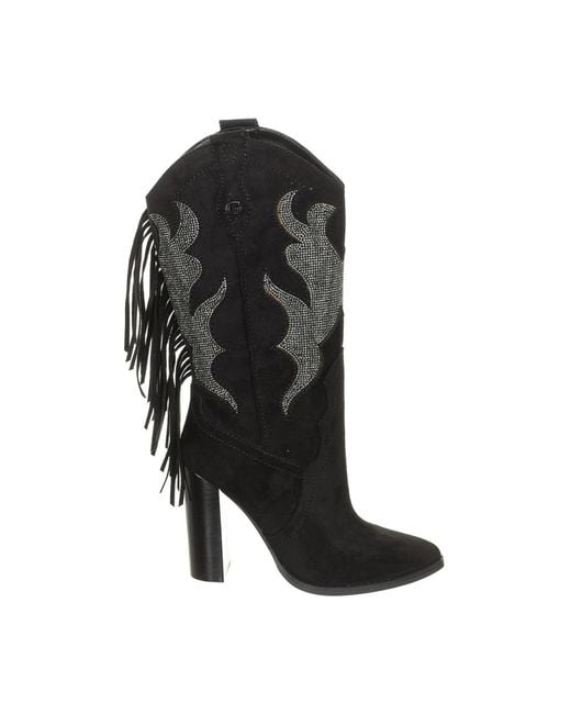 Discover the elegance of Guess with these Pointed Toe Heeled Boots, designed in a sleek black suede finish with unique stone and fringe detailing at the back. Key attributes: Black | Suede | Non-slip sole | Pointed toe | Stone and fringe detailing | Composition & care: Exterior: Synthetic | Interior: Leather, Textile | Sole: Synthetic | Clean with a damp cloth