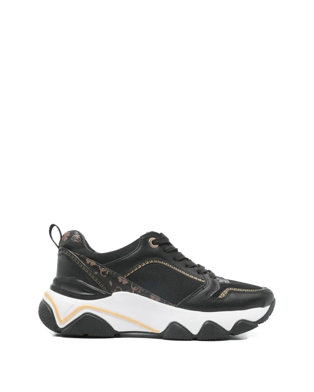 Black logo pattern lace-up fastening rear pull-tab corrugated sole gold-tone hardware Size: 36. Gender: Female. Material:Fabric/Polyurethane/Fabric/Rubber. Colour: white
