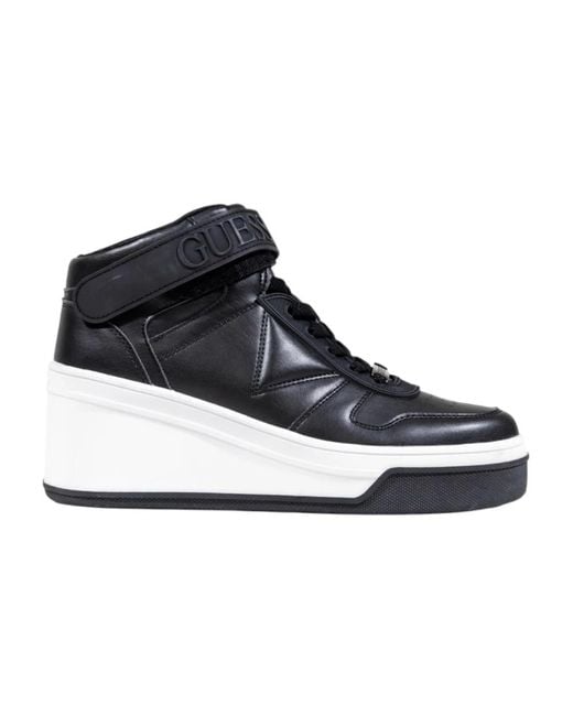 Guess Rubeka Flfruk Ele 12 Trainers combine a high two-tone platform sole with a geometric polyurethane upper for an elevated everyday look. They deliver stable, comfortable walking and finish casual, urban outfits with a distinctive detail at the ankle. Key attributes: Black | Polyurethane | Platform sole for added height and walking stability | All-season wear | Velcro ankle strap | Geometric upper detailing | Embossed Guess logo on ankle strap | High two-tone platform sole | Composition & care: Polyurethane Colour: blue