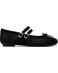 Go to SSENSESilk satin ballerina flats in black. · Suede trim throughout · Square toe · Bow accent at vamp · Pin-buckle slingback strap · Buffed leather lining · Logo embossed at padded footbed ·