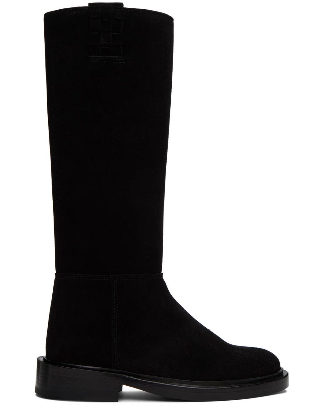 Knee-high panelled waxed suede boots in black. · Woven pull-loops at collar · Grained leather lining · Stacked leather heel with rubber injection · Leather sole with rubber injection · Heel: H1.75 in Supplier color: Black Colour: black