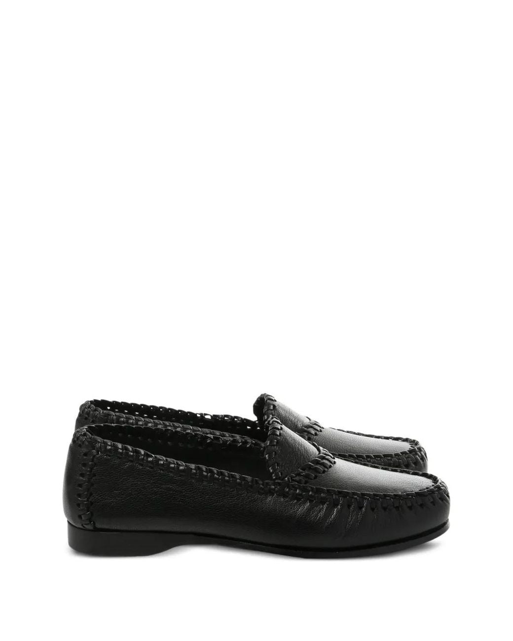 Woven Leather Loafers - Black